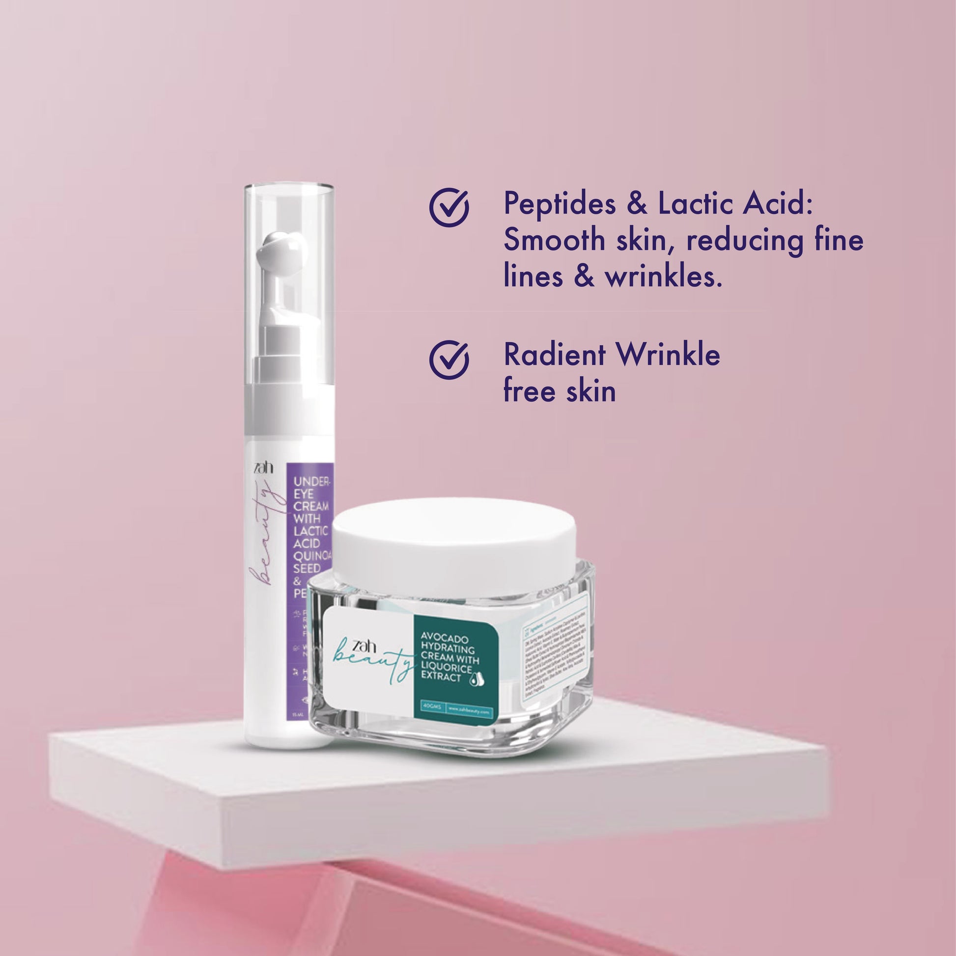 ZAH BEAUTY Hydrate & Brighten Duo | Avocado Hydrating Cream + Under Eye Gel | Deep Moisture, Dark Circle & Fine Line Care